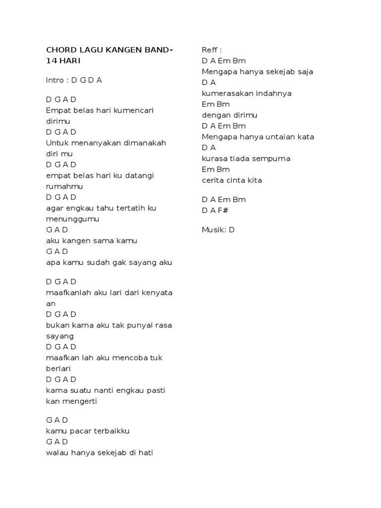Lirik lagu Hitam Kangen Band. F G aku tak bisa mencintaimu. Setiap malam Am Em aku berdoa kepada sang Tuhan F C berharap cintaku jadi kenyataan Dm G agar ku tenang meniti kehidupan.