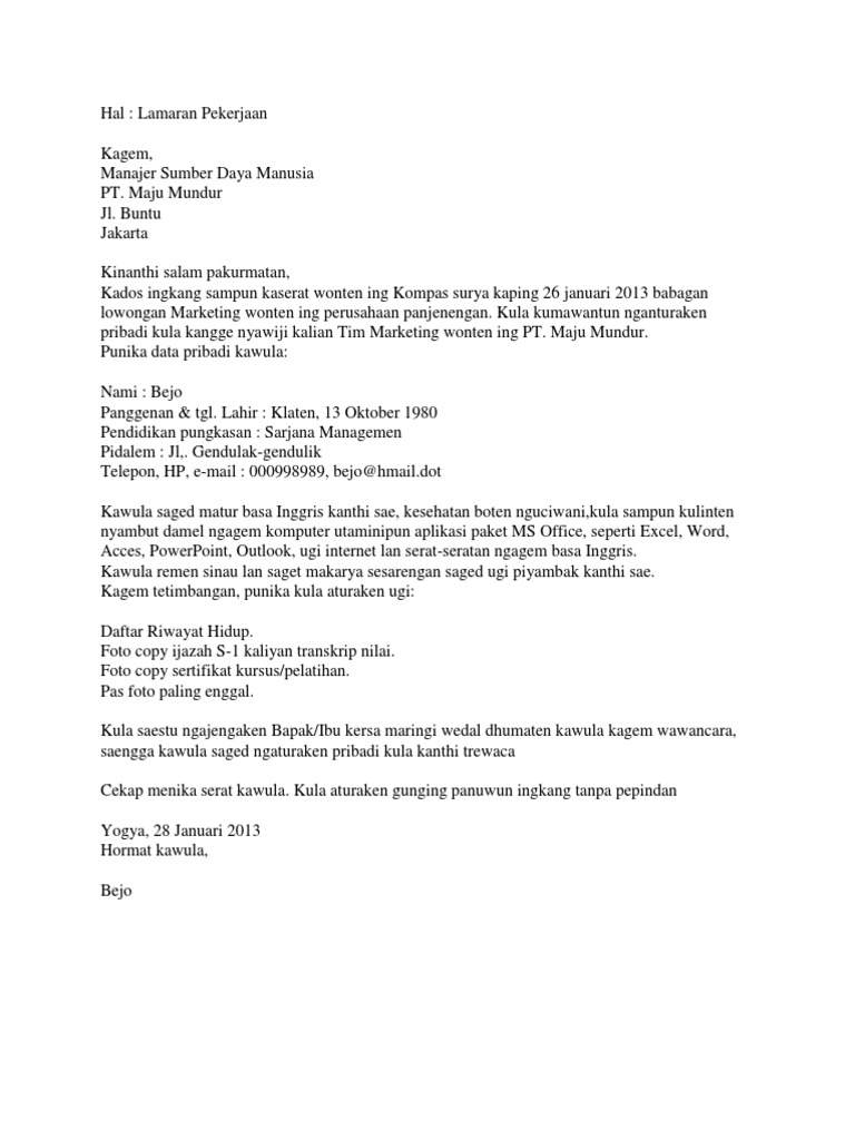 Biodata diri dalam bahasa jawa kumpulan contoh surat naskahkutk Contoh biodata gambar png newhairstylesformen2014com Contoh biodata diri terbaru dan lengkap Sometimes you travel with your with imagination Contoh surat lamaran bahasa inggris housekeeping hotel review ebooks Contoh cv terbaru 2012 newhairstylesformen2014com. Setidaknya dengan memperkenalkan diri dengan bahasa Jawa siswa akan mengenali dirinya sendiri dengan bahasa Jawa yang ia ucapkan. Sebagian orang mungkin masih kesulitan dalam membuat biodata diri karena biodata ini sangat penting dan berguna untuk mengenalkan diri pribadi kepada seseorang maka kami sediakan beberapa contoh biodata dari yang sederhana hingga versi yang lengkap.